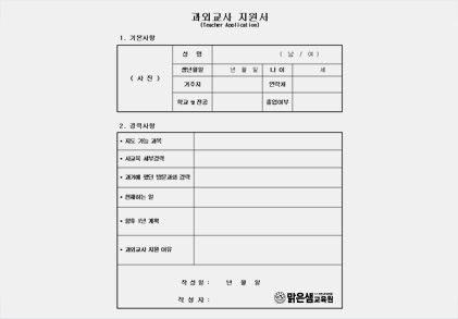 과외교사지원서를 다운받아 똑같은 형식으로 작성